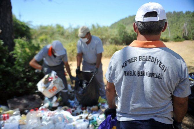 Kemer Belediyesi Temizlik İşleri Müdürlüğü ekipleri tarafından toplanan çöpler geri dönüşüme kazandırılıyor. Belediye ekiplerinin mahallelerde yaptığı rutin temizlik çalışmalarının yanı sıra Kemer'in en güzel koylarında da temizlik çalışması yürütüyor.