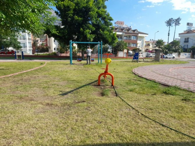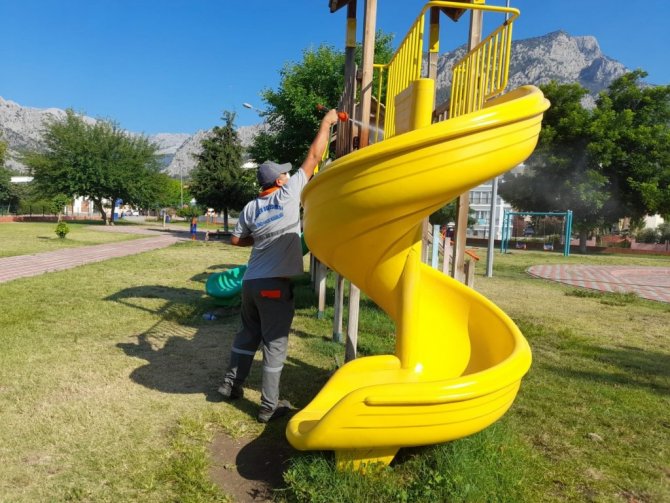 Kemer Belediyesi Park ve Bahçeler Müdürlüğü ekipleri, ilçe genelinde dezenfekte çalışmalarını sürdürüyor.