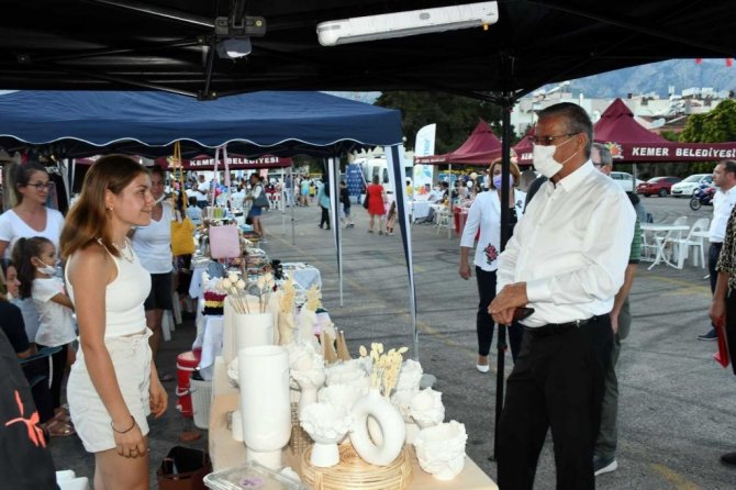 Kemer Belediye Başkanı Necati Topaloğlu, Kemer'deki kadınların el emeği ürünlerini festivalde sergilediğini söyledi. Türk'lerde kadının yerinin çok önemli ve ayrı olduğunu belirten Başkan Topaloğlu, "Kadınlarımız evde kucağına çocuğunu alan bir anne, tarlada çiftçi, cephede bir savaşçıdır. Bunu Kurtuluş Savaşı'nda gördük. Kadınlarımızın olduğu yerde huzur ve sevgi vardır. Kadınlarımız Kemer'de bir kooperatif açıyor. Bize de destek olmak düşer. Her zaman yanlarında olduk ve olmaya da devam edeceğiz" diye konuştu.