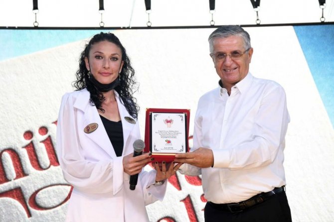 Festival sonrası Başkan Topaloğlu'na desteklerinden dolayı plaket verildi.