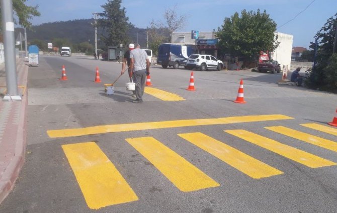 Kemer Belediyesi, ilçe genelindeki okul bölgelerinde yaya geçitlerinin bakımını yapıyor.