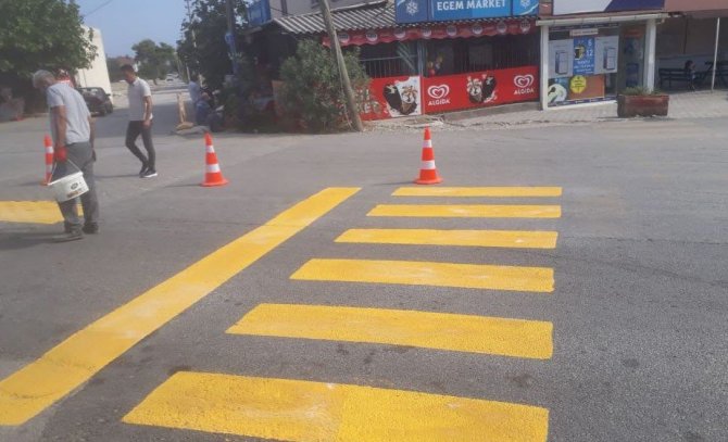 Kemer’de okul çevrelerindeki yaya geçitleri boyanıyor