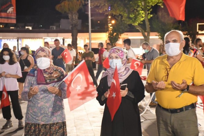 Kemer’de sabah ezanına kadar demokrasi nöbeti tutuldu