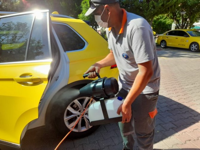 Özellikle turizm sezonunda birçok yerli ve yabancı misafirin sıkça kullandığı taksi ve otobüslerde Korona virüse karşı önlem alınıyor.