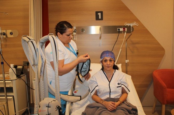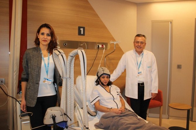 "Kemoterapi alıp bu cihazı kullanan meme kanserli hastaların yüzde 70 ile 90’ında saç dökülmesi olmamış, cihaz kullanmayan tüm hastaların ise saçları dökülmüştür. Etkin bir teknik ve güvenli oldukları da Amerikan FDA kuruluşu tarafından onaylanan bu cihazları çok önemsiyoruz; çünkü hastalarımızın kendilerini iyi hissetmeleri açısından önemli. Kent Onkoloji Merkezimizde isteyen hastalarımızın kullanımına sunduğumuz cihaz, Türkiye’deki en gelişmiş cihaz. Bu cihazın çalışma prensibi de basit. Başa ayarlanarak takılan ve küçük bir dondurma sistemine bağlı silikon başlık sayesinde saçlı derideki damarlar büzüşüyor ve kemoterapi ilacının saç köklerine ulaşması engellenerek saç dökülmesi sorunu ortadan kalkıyor. Kask, kemoterapi seansından bir süre önce başa takılıyor. Bu cihazlar saç dökülmesine neden kemoterapi verilen birçok kanser türünde de uygulanabiliyor; hematolojik malignitesi olanlarda, baş boyun kanseri vakalarında, soğuk alerjisi ve soğuk aglütinin hastalığı olanlarda kullanılmıyor."