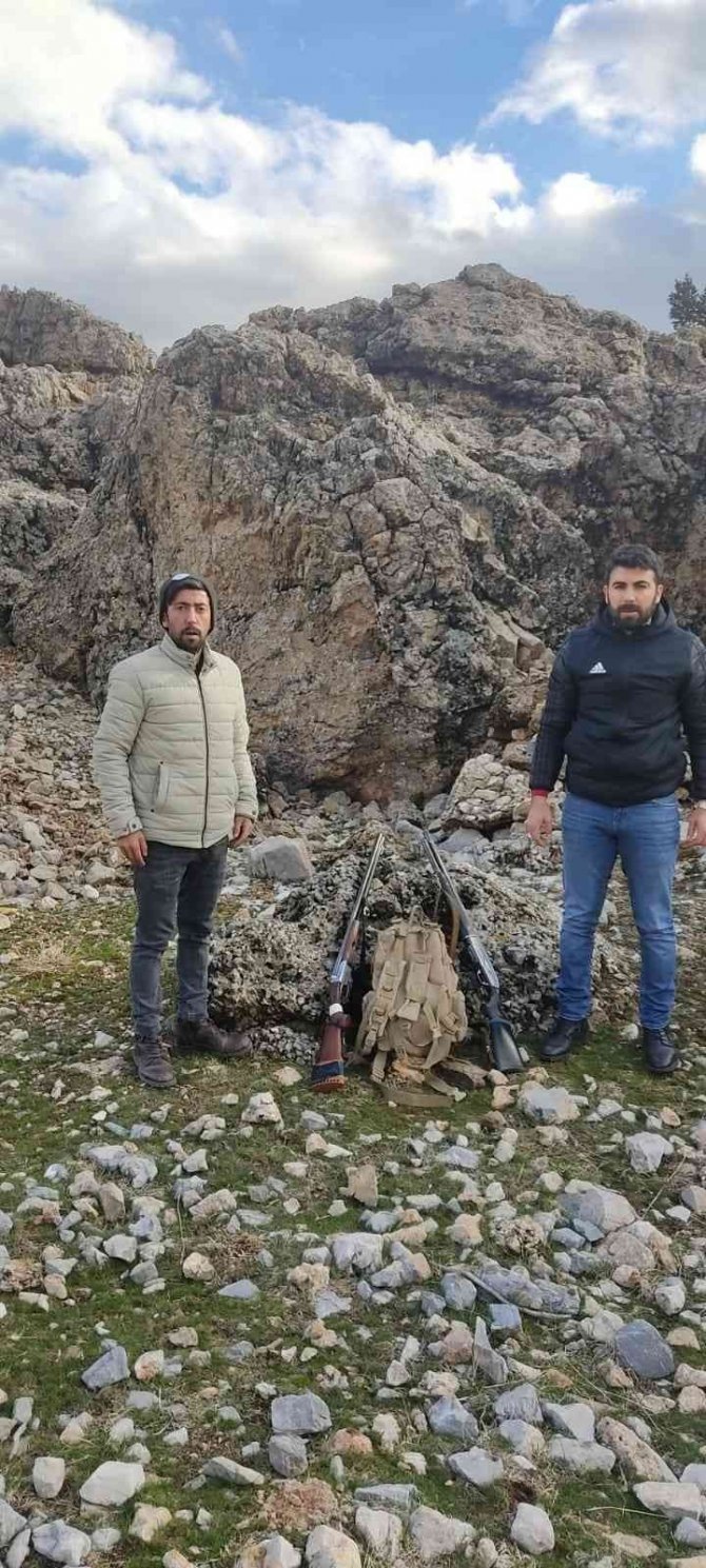Kahramanmaraş'ın Nurhak ilçesinde yasa dışı olarak keklik avlayan 2 şahıs, ceza yiyeceklerini anlayınca çareyi tüfeklerini atıp kaçmakta buldu.