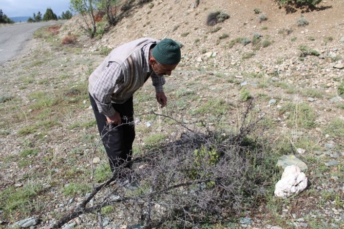 İsmail Eldek yol kenarlarında ve kırlarda iki yılda toplam 200'e yakın kendiliğinden yetişen meyveyi aşılayarak doğadaki canlıların ve insanların kullanımına sunuyor.