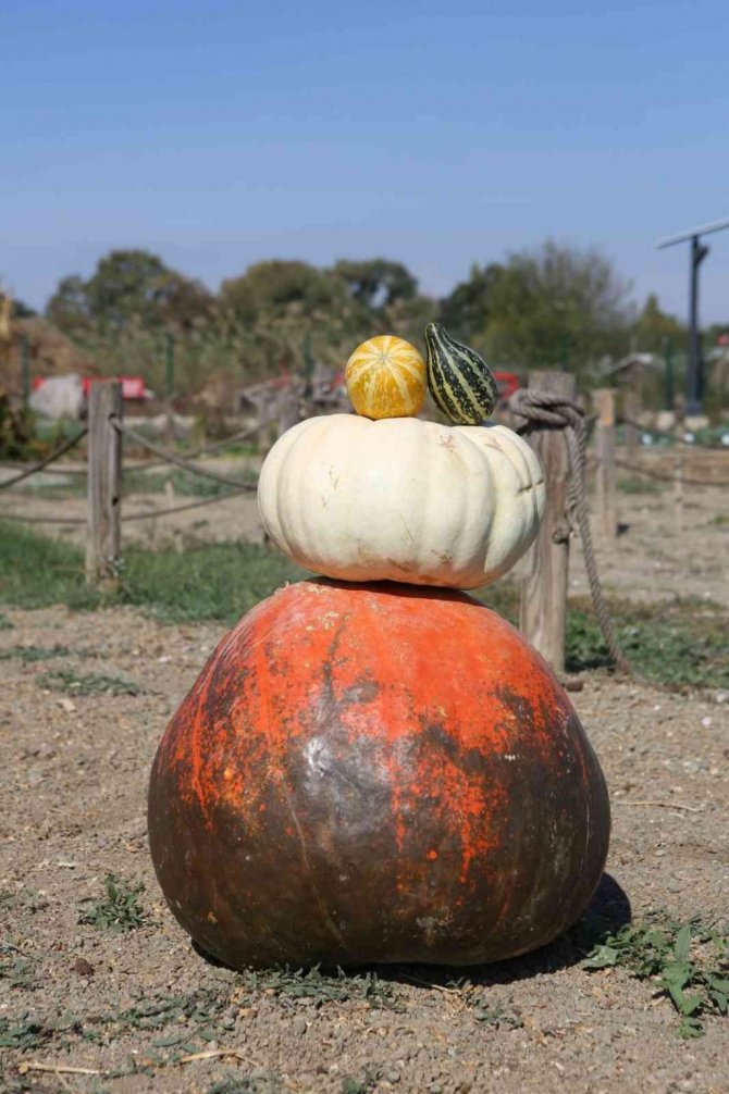 100 gramdan yaklaşık 30 kilograma kadar ağırlığı ve 5 santimetreden yaklaşık 2 metreye yakın uzunluğu bulunan farklı türden kabaklar görenleri hayrete düşürüyor.