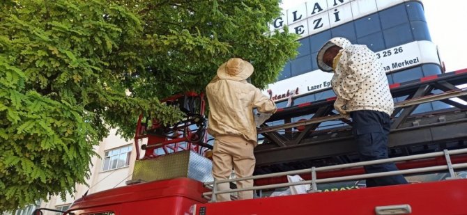 Kentte her gün binlerce kişinin geçtiği Şehit Er Rahmi Koldan Meydanı'nda bulunan bir akasya ağacının dalına oğul veren arıları gören vatandaşlar, durumu itfaiye ekiplerine bildirdi. Meydana gelen itfaiye ekipleri, arıların sokma ihtimaline karşı arıcı kıyafeti giydi. Caddedeki trafik de polis ekiplerince kesildi. İtfaiye aracının üzerine çıkan ekipler, 2 ayrı oğul halindeki binlerce arıyı çuvallara koyarak bölgeden uzaklaştırdı.