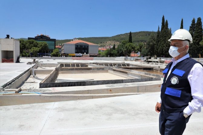 Muğla Büyükşehir Belediyesi tarafından Menteşe ilçesinde yapımı devam eden Kent Meydanı'nda çalışmalara hız verildi.