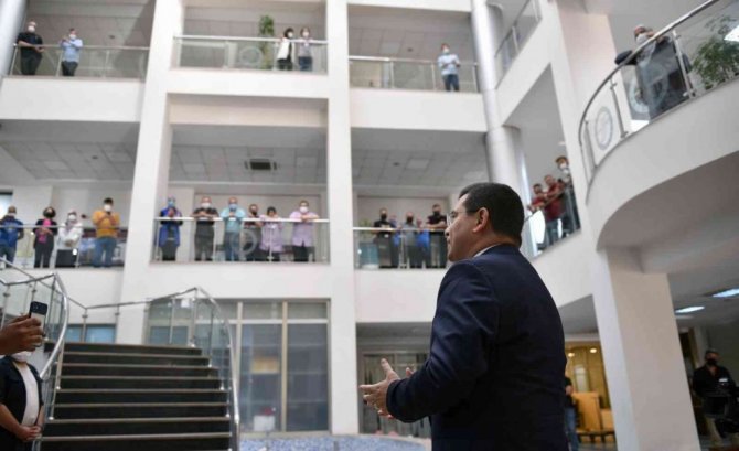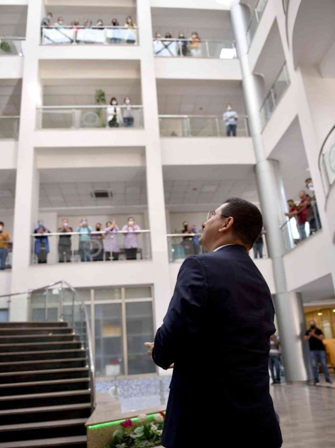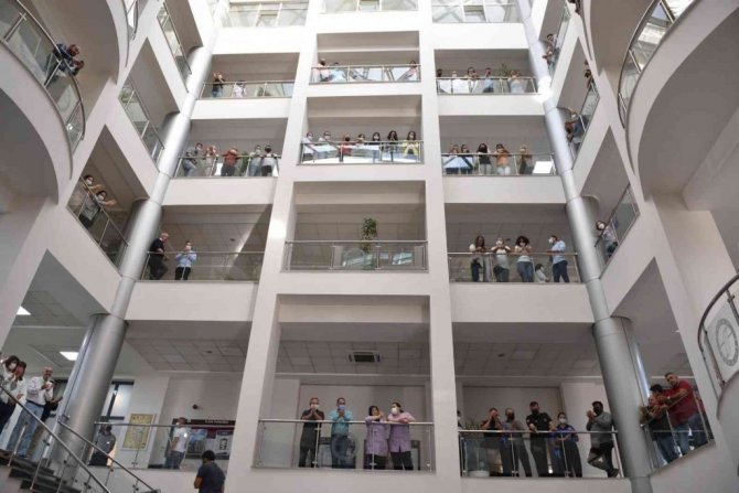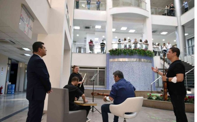 Kepez Belediye Başkanı Hakan Tütüncü, personelin haftanın ilk iş gününe yüksek motivasyonla başlaması, vatandaşların daha hoş karşılanması amacıyla sunulan müzik ziyafetine ortak oldu.