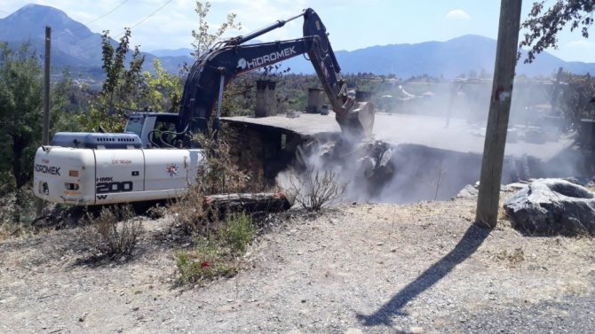 Kepez Belediyesi Fen İşleri Müdürlüğü ekipleri, yangın felaketinden etkilenerek, Çevre ve Şehircilik Bakanlığı'nca yıkım kararı verilen Gündoğmuş ilçesinde 35 evin yıkımını gerçekleştirdi.