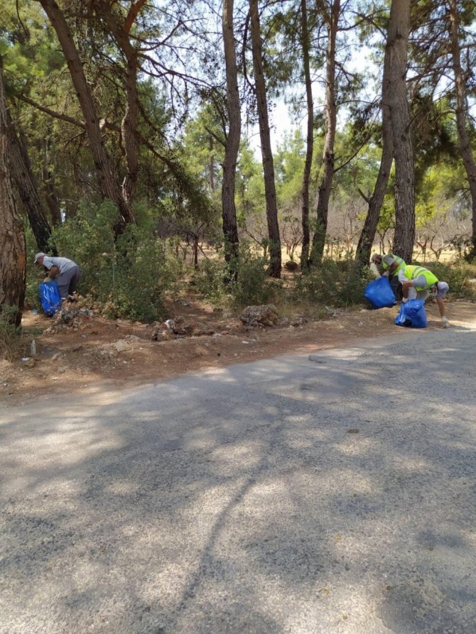 Kepez Belediyesi Temizlik İşleri Müdürlüğü ekipleri, Avni Tolunay ve Duraliler Mahallesi yanı başındaki ormanlık alanda doğaya atılan çöpleri temizledi.