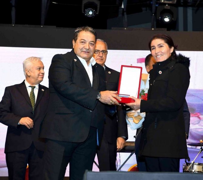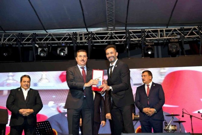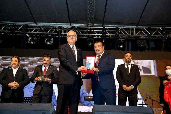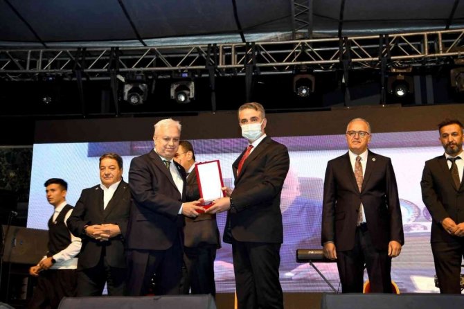 Malatya Büyükşehir Belediye Başkanı Selahattin Gürkan, Sanatçı Selahattin Alpay'a Kernek Onur Ödülü, çiçek ve kayısı takdim etti.