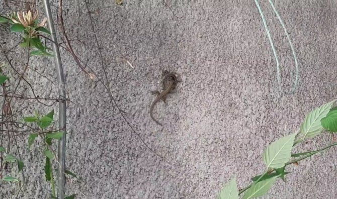 Duvarı paylaşamadıkları için mücadele veren kertenkeleler bir süre kapıştı. Yansıyan görüntülerde bir süreliğine üstünlük kuran kertenkelelerden birinin diğerinin kuyruğunu ısırdığı görüldü. O anlarda kaçmak için hareketlenen kertenkeleyi diğeri de peşinde kovaladı. Durup karşılık verince bir kere daha kapışan kertenkelelerin kavgasında kazanan olmadı. İki kertenkele de kavga sonucu yere düşerek sahiplendikleri duvardan oldu.