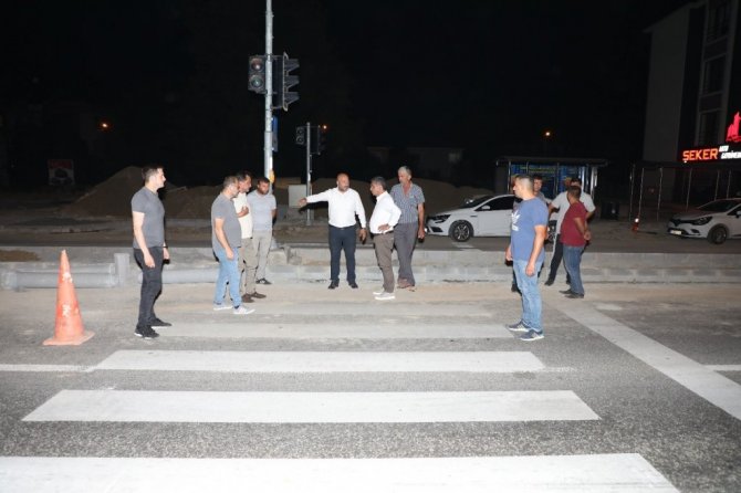 Düzce Belediye Başkan Yardımcısı Cengiz Tuncer, geçtiğimiz gün refüjlerdeki tabela ve elektrik direklerinin söküldüğü kavşakta incelemelerde bulunarak yapılan çalışmalar hakkında bilgi aldı. Daha sakin olan gece saatlerinde çalışma alanına giden Tuncer, kavşağın kısa sürede bitmesi için gece gündüz çalışma yapıldığını kaydetti.