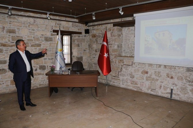 Başkan Kayalı’nın ardından konuşan Kuşadası Yerel Tarih Araştırmaları Grubu Temsilcisi Ali Ergül ise Kervansaray’ın Kuşadası tarihi açısından büyük bir önem arz ettiğini belirterek yapılacak her türlü yenilik ve tadilatın bu husus doğrultusunda yapılması gerektiğini ifade etti.