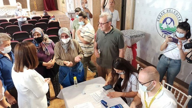 Edirne'nin Keşan ilçesinde pazaryerine gelenler, belediye nikah salonunda kurulan aşı istasyonunda aşılandı.