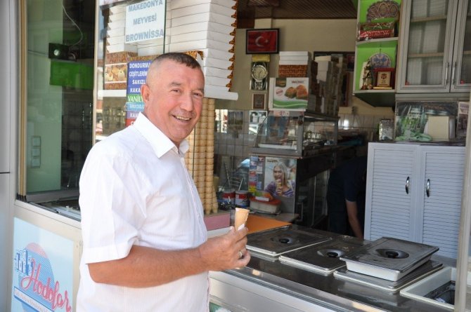 67 yaşındaki Yaşar Göker, tadına baktığı ve çok güzel bulduğu kestaneli dondurmayı herkese tavsiye ettiğini söyledi.