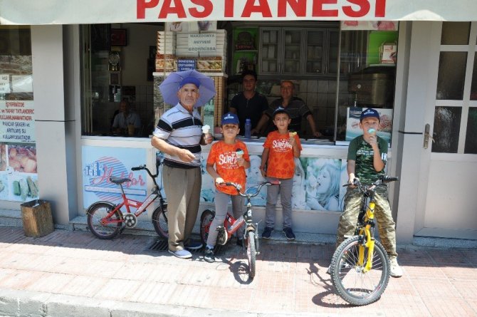 Dedesiyle kestaneli dondurma almak için gelen ikiz kardeşler Efe ve Ege Parlak, kestaneli dondurmayı çok sevdiklerini söylediler.