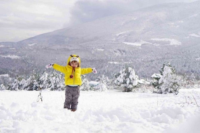 Kar yağışı Kestel'e çok yakıştı