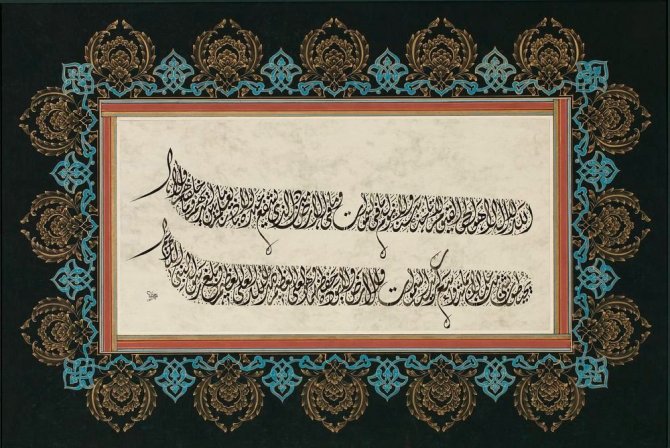 Fatih Belediyesi Kadırga Sanat Galerileri'nde hüsn-ü hat sanatında adı ülke sınırlarını aşmış, yaşayan insan hazinesi, Hattat Hasan Çelebi'nin "Ketebehu...