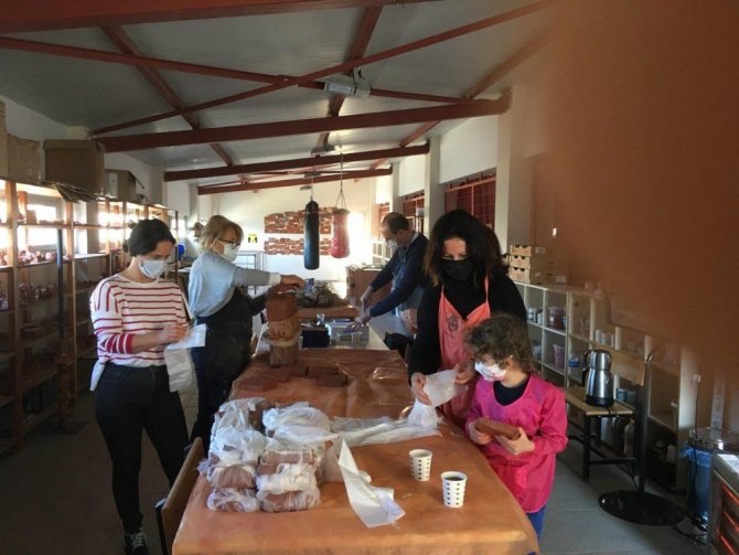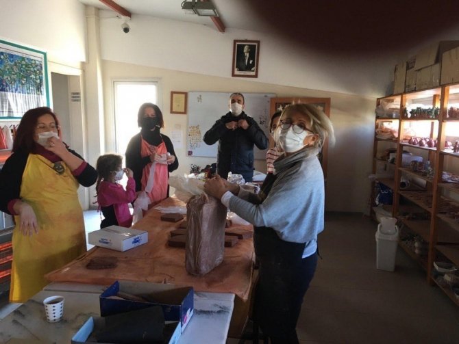 Evlerinde kil çamuru ile hayallerini şekillendireceği "Evde Sanat" projesi etkinliğine 200'e yakın Çeşmeli öğrenci katılıyor.