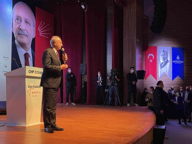 Cumhuriyet Halk Partisi (CHP) Genel Başkanı Kemal Kılıçdaroğlu, partisinin Esenler'de düzenlediği üye katılım törenine katıldı. Program saygı duruşunda bulunulması ve İstiklal Marşı'nın okunmasıyla tören başladı. Ardından CHP'ye katılan üyelere teşekkür eden Kılıçdaroğlu, geçmişte CHP'nin hatalar yaptığını kabul ederek, başörtüsünü Türkiye'nin bir numaralı sorunu haline getirdiklerini belirtti.