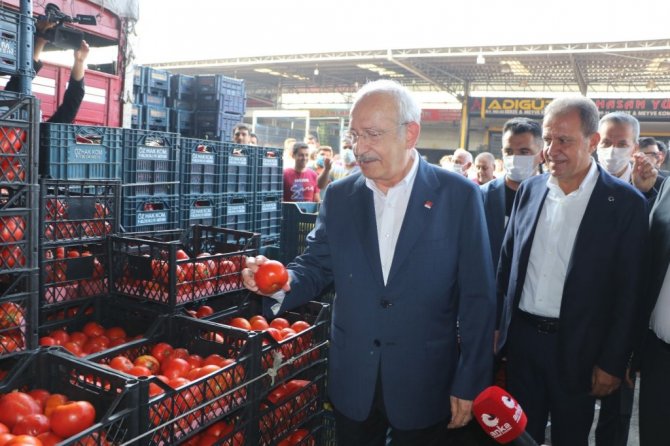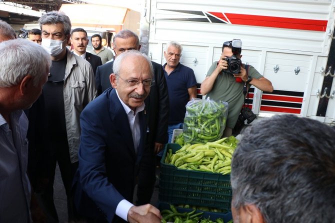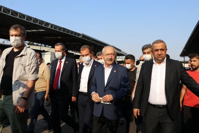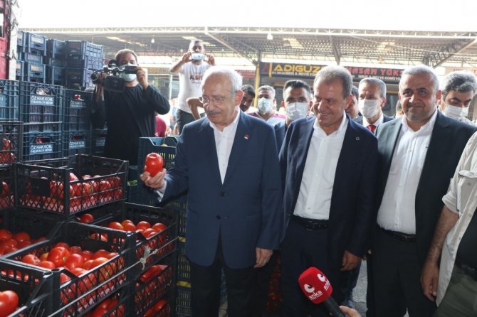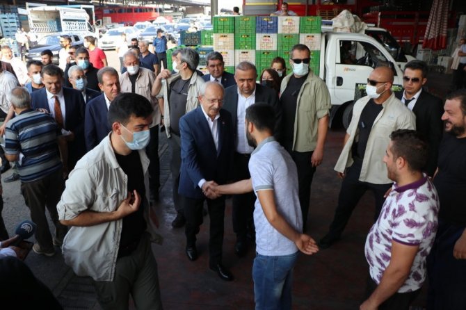 CHP Genel Başkanı Kemal Kılıçdaroğlu, iki günlük program kapsamında geldiği Mersin'de, Yaş Sebze ve Meyve Hal Kompleksinde hal esnafıyla bir araya geldi,...