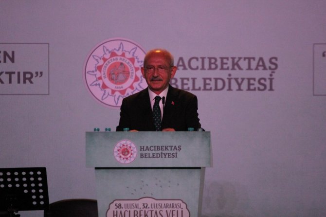 Hacıbektaş ilçesine gelen CHP Genel Başkanı Kemal Kılıçdaroğlu, Hacı Bektaş Veli Külliyesi içerisinde bulunan kabrini ziyaret etti. Külliyeyi gezen Kılıçdaroğlu ve beraberindeki heyete yetkililer bilgi verdi. Kılıçdaroğlu daha sonra 58. Ulusal 32. Uluslararası Hacı Bektaş Veli Anma Törenleri ve Kültür Sanat Etkinlikleri programına katıldı. Burada konuşan Kılıçdaroğlu, İslam'ın bazı çevrelerce kendi çıkarları doğrultusunda yorumlanınca sorunların ortaya çıktığını ifade ederek, "Biliyoruz ki iyi bir insan olarak kalabilmenin, yaşayabilmenin temeli ahlaktır. Bu bağlamda Hacı Bektaş, Mevlana, Yunus Emre gibi erenler Anadolu'daki en önemli temsilcileridir. Ahlaklı olmak vicdanlı, adaletli olmanın yoludur. Dinimiz, barış, kardeşlik, akıl dinidir. Ancak üzülerek ifade edeyim ki bugün İslam coğrafyası terörün merkezine dönüşmüş durumdadır. Sorunlarımızın bedeli güzel dinimiz değildir. Ancak güzel dinimiz bazı çevrelerce ve kendi çıkarları doğrultusunda yorumlanınca sorunlar ortaya çıkmaktadır. Bu sorunları çözmek zorundayız. Bu bağlamda adaleti yeniden öğrenmeliyiz, paylaşmayı yeniden öğrenmeliyiz. Bu süreci önce kendimizi onararak başlamalıyız. Hacı Bektaş'tan öğrendiğimiz gibi kul hakkı yemeden yaşamalıyız" dedi.