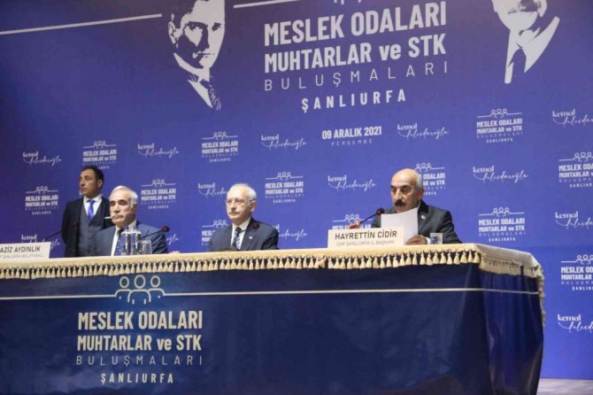 ŞANLIURFA (İHA) – CHP Genel Başkanı Kemal Kılıçdaroğlu, Şanlıurfa'da muhtarlar, STK temsilcileri ve meslek odaları temsilcileriyle bir araya geldi.