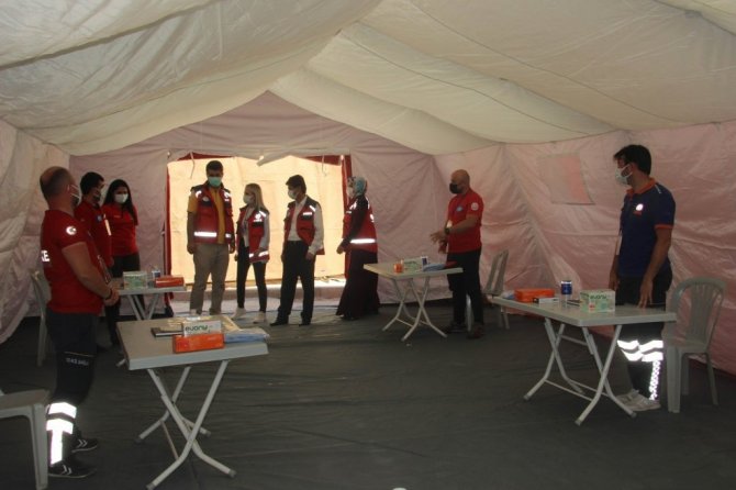 Kilis Gençlik ve Spor Hizmetleri İl Müdürlüğü bahçesinde "ağır iklim sahra hastanesi kurulumu" eğitimi verildi.