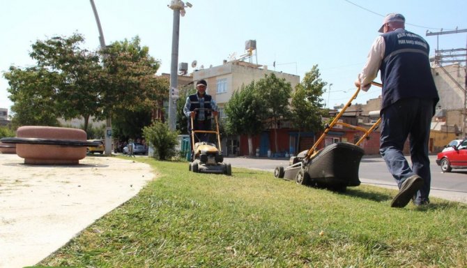 Kilis Belediyesi tarafından kent merkezindeki parklar, mesire alanları, refüjler ile mezarlıkların bakımları, çim biçme ve temizlikleri 40 dereceyi aşan sıcağa rağmen aksatılmıyor.