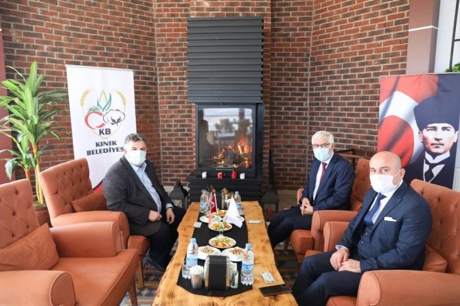 Bakırçay Üniversitesi Rektörü Prof. Dr. Mustafa Berktaş, Kınık Belediye Başkanı Dr. Sadık Doğruer'i ziyaret ederek ilçede kurulacak sağlık meslek yüksek okuluyla ilgili istişarede bulundular.
