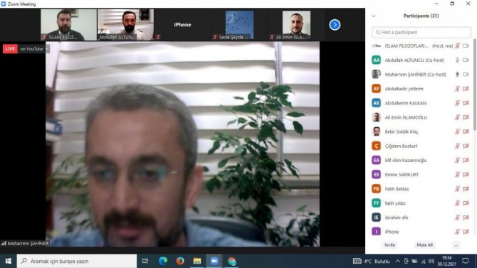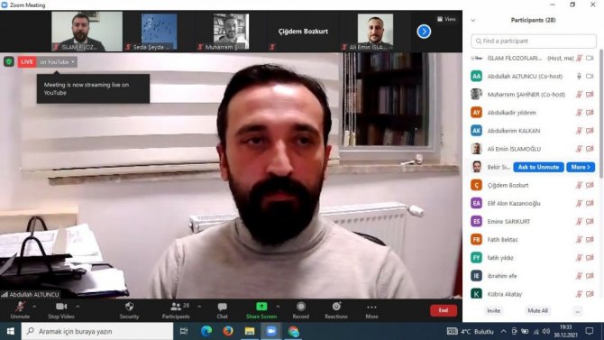 "Kıraathane Söyleşileri"nin otuz birincisi, "İslam Filozoflarında Din Dili" başlıklı söyleşi, 7 Aralık Üniversitesi Rektör Danışmanı Dr. Öğr. Üyesi Abdullah Altuncu'nun yönlendiriciliği ve Felsefe ve Din Bilimleri Bölümü İslam Felsefesi Ana Bilim Dalı Başkanı Dr. Öğr. Üyesi Muharrem Şahiner'in sunumlarıyla çevrim içi olarak gerçekleştirildi.