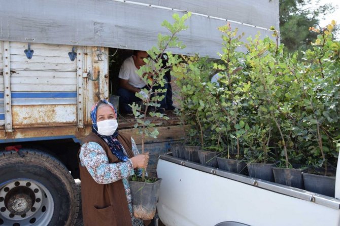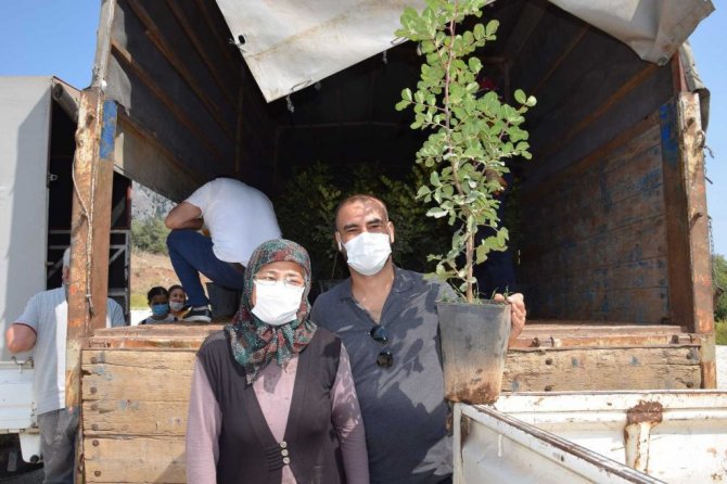 Kıraç araziler için çiftçilere keçi boynuzu fidanı dağıtıldı