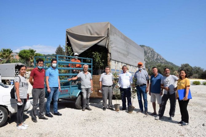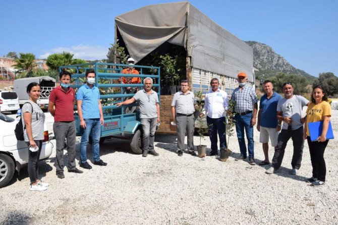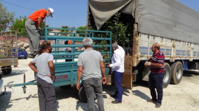 Antalya'nın Kumluca ilçesinde marjinal arazilerin değerlendirilmesi kapsamında çiftçilere keçi boynuzu fidanı dağıtıldı.