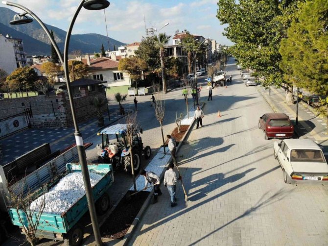 Kırkağaç’ın prestij caddelerinde peyzaj çalışmaları başladı