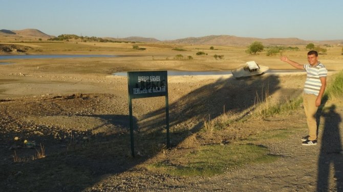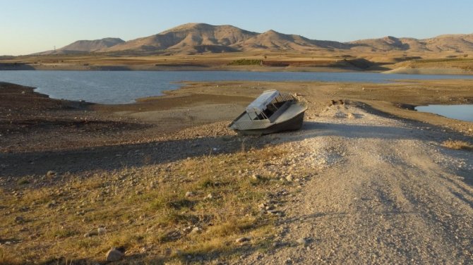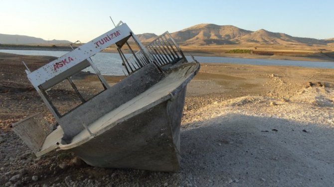Kırkat Göleti’nde su seviyesi azaldı, suyun ortasında bulunan tekne karaya oturdu