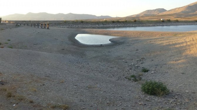 Batman'ın Gercüş ilçesinde bulunan Kırkat Göleti'nde kuraklığın da etkisi ile su seviyesinde azalma meydana geldi.