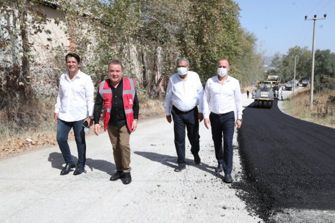 Antalya Büyükşehir Belediyesi, Döşemealtı'nın birçok köyle bağlantısını sağlayan Atatürk Caddesi Kırkgöz yolunu sıcak asfaltla kaplıyor. 5 milyon lira yatırım yapılan yolun son aşaması olan sıcak asfalt çalışmalarını yerinde inceleyen Büyükşehir Belediye Başkanı Muhittin Böcek, "Vatandaşlarımıza yeni yolları hayırlı olsun" dedi.