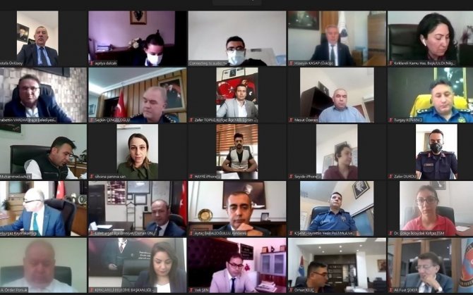 "Kademeli Normalleşme Sürecinin İkinci Etabı" kapsamında kent genelinde korona virüs tedbirlerinin değerlendirildiği il pandemi toplantısı Kırklareli Valisi Osman Bilgin'in başkanlığında, vali yardımcıları, kaymakamlar, belediye başkanları, kurum müdürleri ve STK başkanlarının katılımıyla video konferans yöntemi ile gerçekleşti.