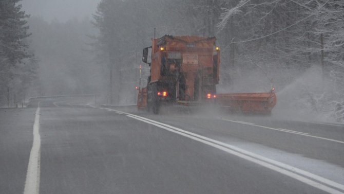 İl Özel İdare ile Karayolları ekipleri, kar yağışının olduğu bölgede çalışmalarını sürdürüyor.