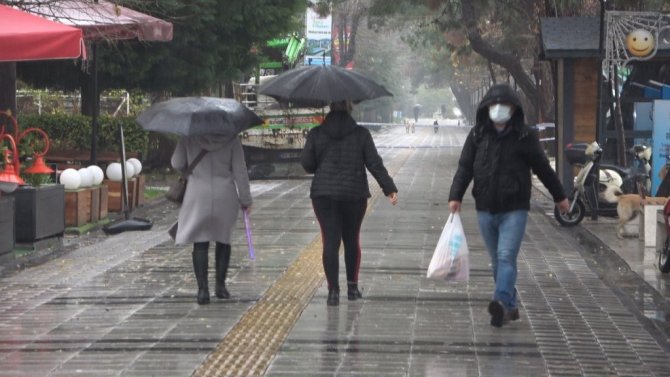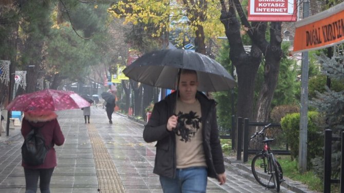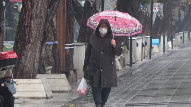 Yağış nedeniyle bazı vatandaşlar şemsiyeleriyle korunmaya çalışırken bazıları da otobüs duraklarında korunmaya çalıştı.