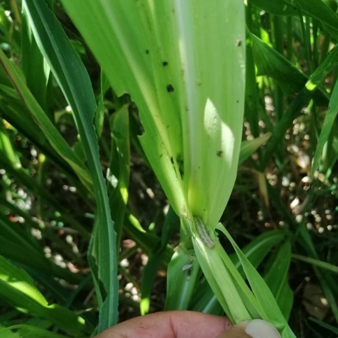 Mısır bitkisinin gelişimi inceleyen ekipler, zarar tespitleri de yaptı.