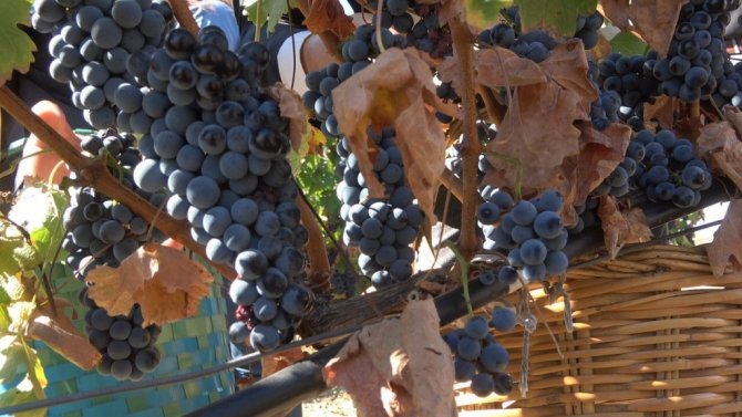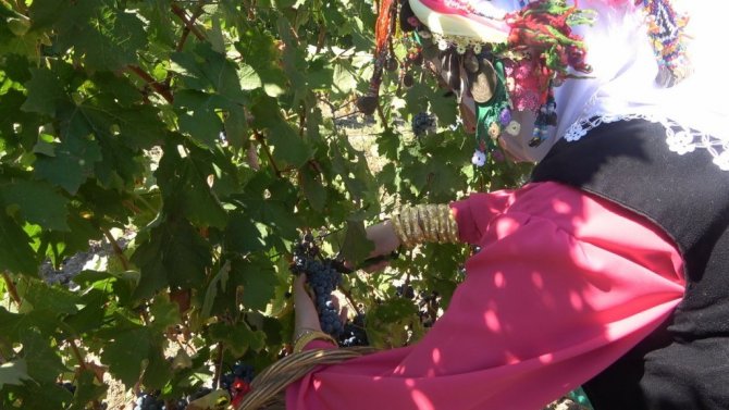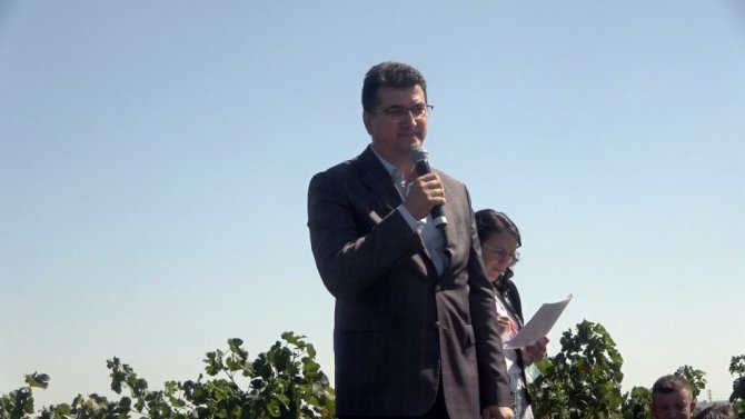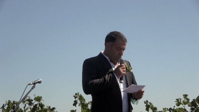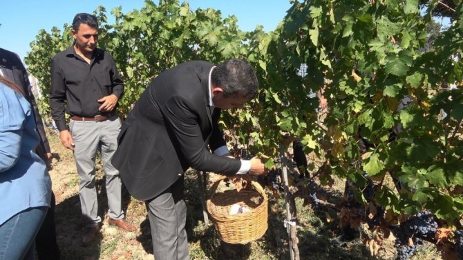 Konuşmalarından ardından üzümler toplandı.