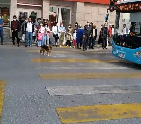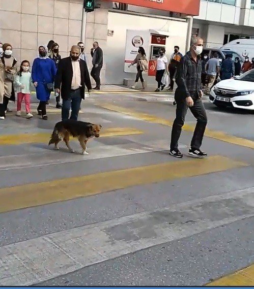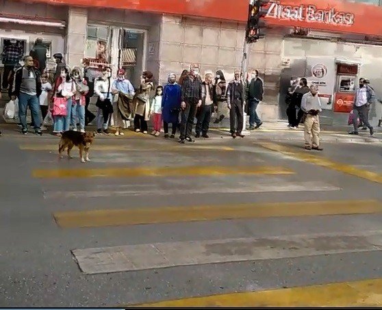 Köpeğin vatandaşlar gibi kırmızı ışıkta beklemesi ve sonradan ise yeşil ışık yanınca vatandaşlar ile beraber köpeğin karşıya geçmesini görenler değişik yorumlar yaptı.
