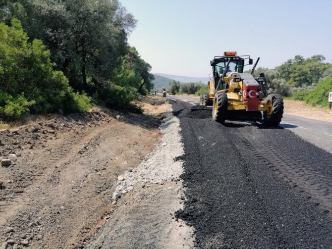 Muğla genelinde kırsal mahallelerin yollarını yenilemeye ve genişletmeye devam eden Muğla Büyükşehir Belediyesi, Milas ilçesine bağlı Kazık ve Gürçamlar Mahalleleri bağlantı yolunda zemin güçlendirme ve yol bakım çalışmasını sürdürüyor.