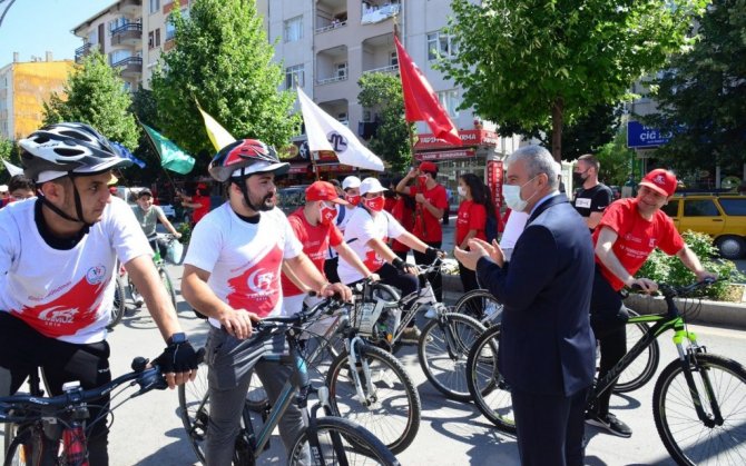 Kırşehir'de, 15 Temmuz Demokrasi ve Milli Birlik Günü etkinlikleri kapsamında "Yollar Geçilir Türkiye Geçilmez" temalı bisiklet turu düzenlendi.