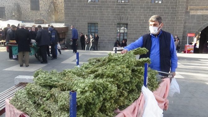 Hava sıcaklıkları düşmesiyle birlikte Diyarbakır'da vatandaşlar soğuk havalarda hastalıklardan korunmak için doğal yöntemlere başvuruyor. Kentte özellikle kış çaylarına talep artarken bunların başında gelen adaçayı da tezgahlarda yerini aldı. Bağışıklık sistemini güçlendirerek, grip ve soğuk algınlığına iyi geldiği düşünülen adaçayı korona virüsten korunmak isteyenlerin de bir numaralı içeceği haline geldi.